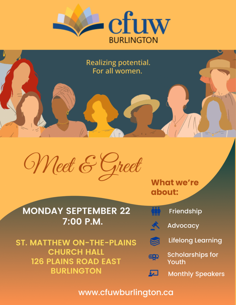 This is a perfect opportunity to learn more about CFUW Burlington and sign up for Interest Groups.